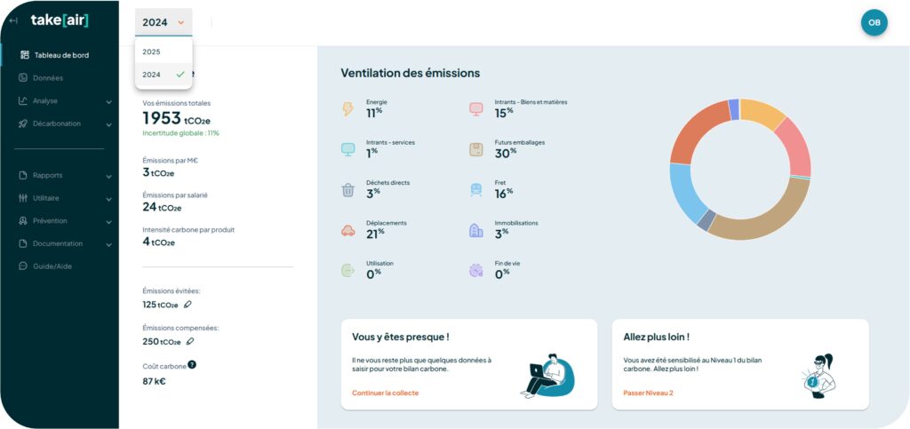 ✓ Création de dashboards qui répartissent les émissions de GES en fonction de vos différents postes